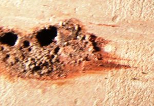 Колонии бактерий в данном случае не покрывают всю поверхность трубы, как обычная био-пленка, они похожи на очаги, под которыми находится окисленный металл.