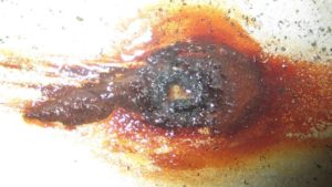 Продуктом жизнедеятельности бактерий является кислота, которая разъедает металл трубопровода изнутри, вследствие чего на внутренней поверхности трубопровода образуются очаги точечной коррозии.