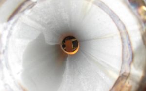 Уже во время первого вскрытия трубопровода, через два месяца работы Гидрофлоу, видно, что колоний бактерий нет, остался только разъеденный кислотой металл.