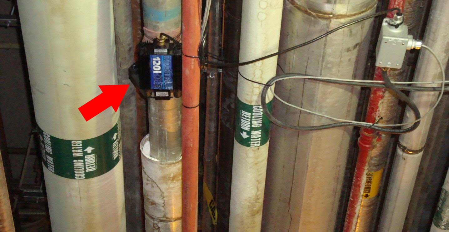 Устройство Гидрофлоу смонтировано на трубопроводе за 3 метра до контрольного участка.