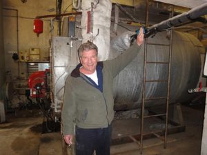 Мой предшественник раньше ставил какой-то прибор (скрыт рукой на фото) на паровой котел, хотел защитить его от накипи. Но каких-то заметных результатов мы не заметили. Пробовали что-то еще, но и оно тоже не помогло.